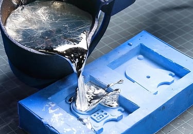 The manufactured mold is mounted onto the injection molding machine. Usually, an alloy called Zamak is melted in large crucibles and injected into the attached mold.