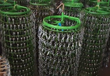 Plating: To prevent skin irritation and ensure compliance with international health standards, buckles undergo a nickel-free plating process. Depending on the part's sensitivity, they are either arranged on racks (rack plating) or processed in rotating barrels (barrel plating).